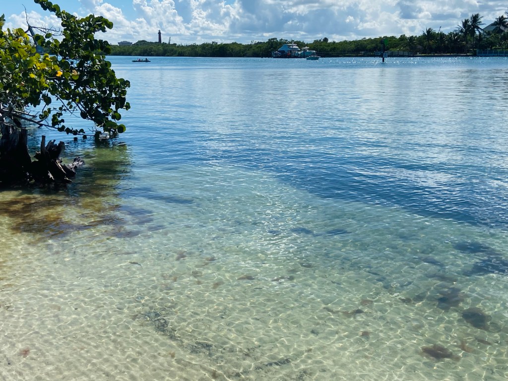 Almost every day, following street evangelism, if there aren’t any waves, I drive over to the Jupiter inlet in order to swim in the clear blue-green water, especially just before high tide as it fills in with the warm Gulf Stream current, which lies only 3 miles off shore. The inlet is full of sea turtles, manatees, spotted eagle rays, schools of Jack Crevalle and every manner of tropical fish – and of course, sharks. Swimming against the current one way….and then riding it back to my little beach the other way, is one of the great joys of my life. The swim out against the tide is a challenge, but the journey back, being gently pushed by the warm, clean Gulf Stream, is like quietly flying through a thick blue sky, but instead of birds, it’s full of brilliantly, and beautifully crafted marine life. I see the creativity, love and power of God every single swim.