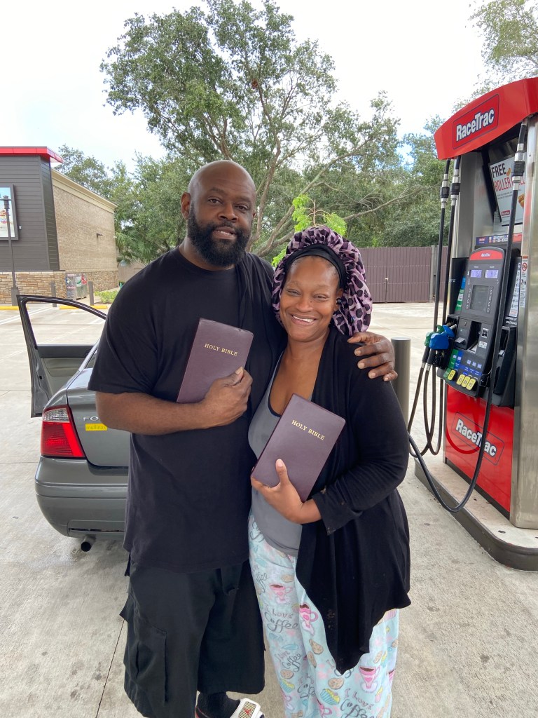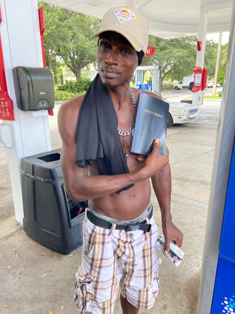 I was recently approached by someone on Twitter who wanted to interview me about my seven plus years as a street evangelist. He had seen some of my posts asking for prayer for homeless people or those who requested Bibles, and knew that I had been an attorney for many years before I became a street evangelist. I agreed and, thankfully, even though I talk fast, I believe that I was able to communicate why I do what I do in as clear a manner as is possible. I hope you will consider listening and will be encouraged. The photos below are a small sample of the precious souls to whom I have been able to minister and give Bibles, tracts and when necessary, food, socks and water(provided by my church).